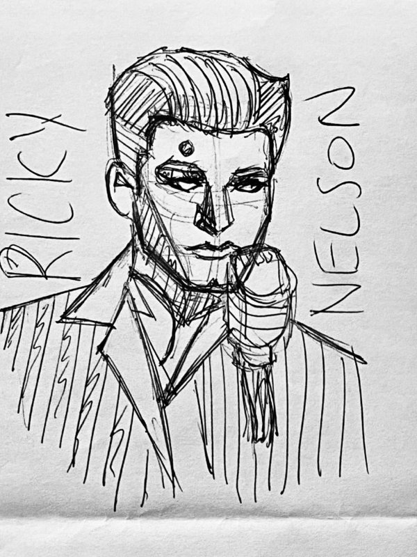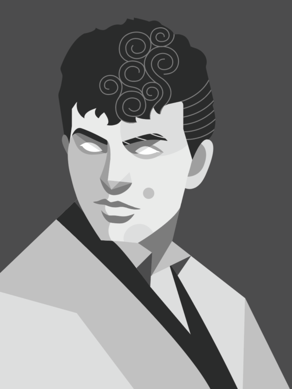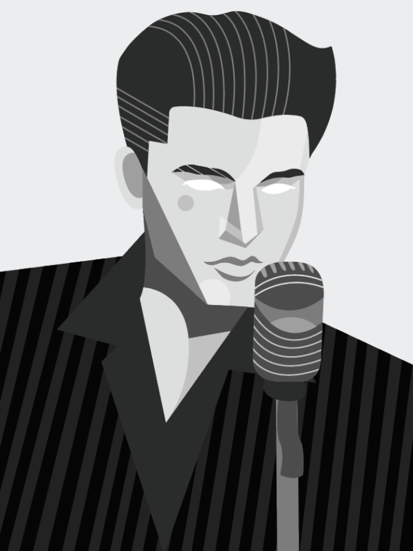 This idea of mixing deep warm emotions with a cool, gritty feel gives reason to choose purple as the background colour, as purple is a balance between red, a warm colour, and blue, a cool colour. His album Teen Angel, released in 2011, compiled songs he recorded with the Belmonds, which was also the main inspiration for choosing purple.
